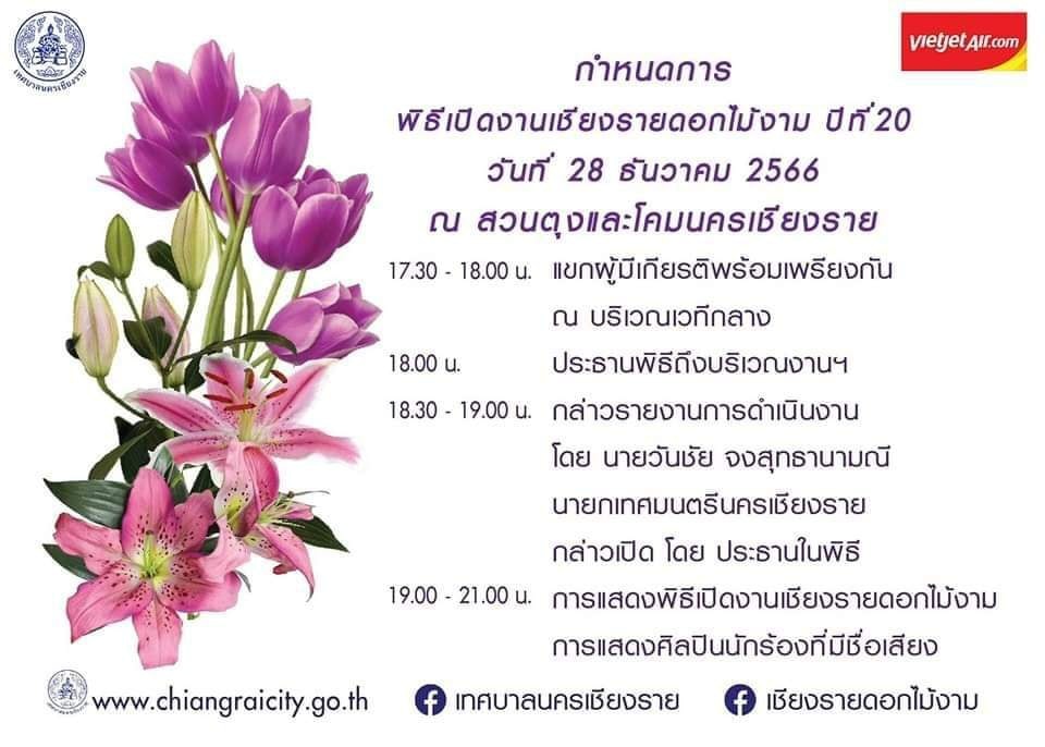 “งานเชียงรายดอกไม้งาม ครั้งที่ 21” ระหว่างวันที่ 27 ธันวาคม 2567-16 กุมภาพันธ์ 2568