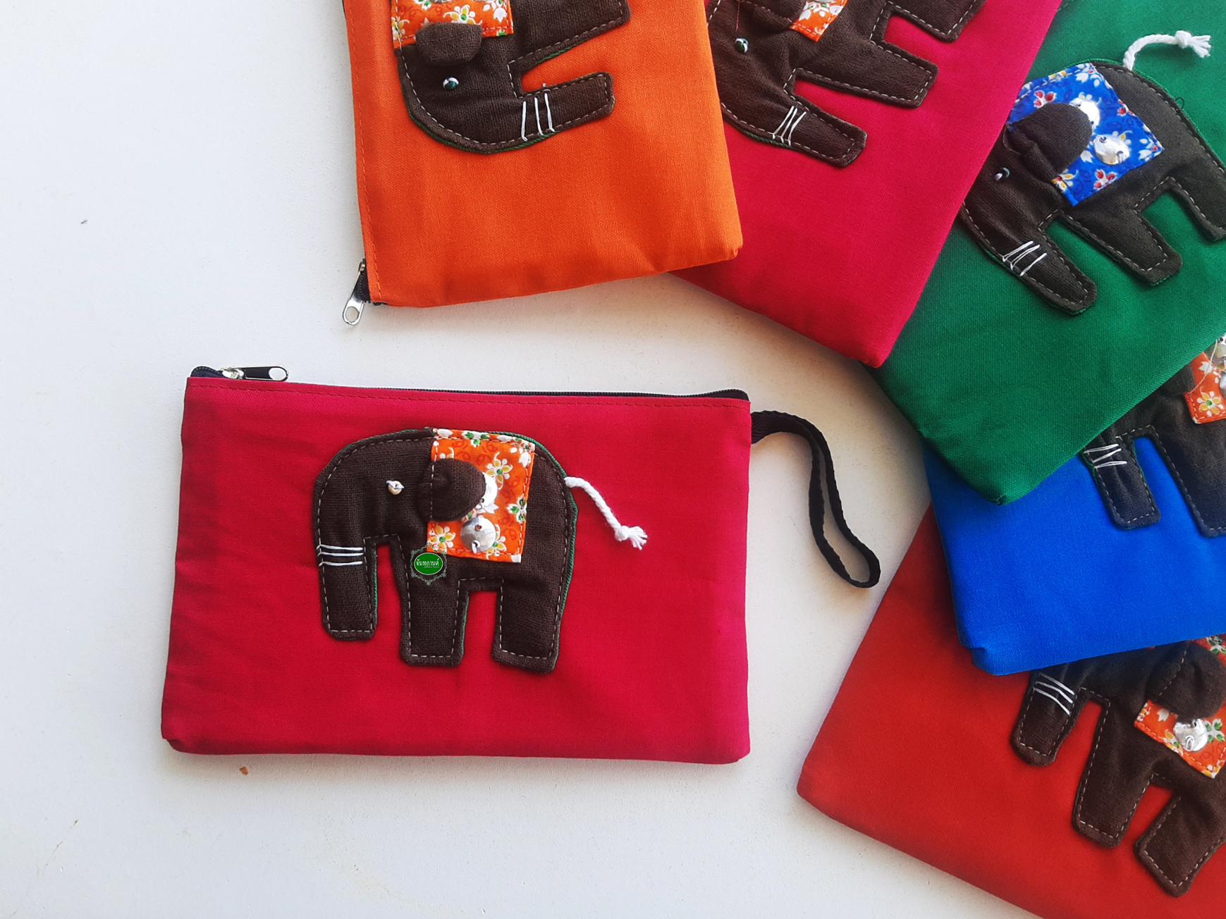 กระเป๋าถือผ้า ตุ๊กตาช้าง เย็บตกแต่ง1ตัว ตกแต่งหัตถกรรมพื้นเมืองภาคเหนือ ใช้เป็นของฝากของที่ระลึก แทนความนึกถึง